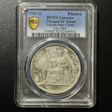 Xu bạc Đông Dương – 1 Piastre 1903-A (PCGS Genuine – Cleaned XF Detail)