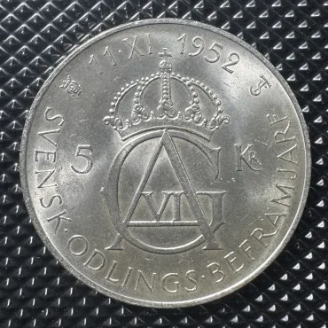 Đồng xu Thụy Điển – 5 Kronor 1952 – Kỷ niệm 70 tuổi Vua Gustaf VI Adolf