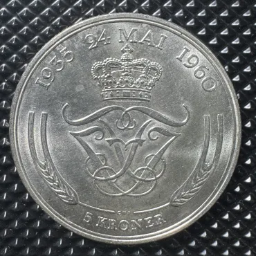 Đồng xu Đan Mạch 5 Kroner 1960 (Kỷ niệm 25 năm ngày cưới Hoàng gia)