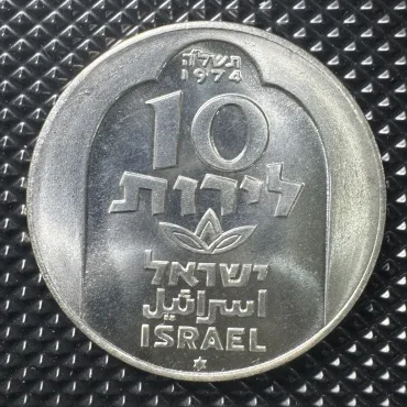 Đồng xu Bạc Kỷ niệm Hanukkah Israel 10 Lirot – Năm 1974 (Cây đèn Damascus thế kỷ 18)