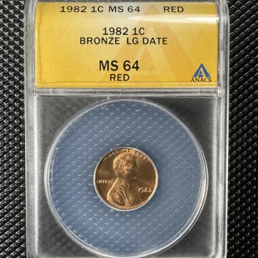 Đồng 1 Cent Mỹ 1982 Lincoln Memorial – Bronze Large Date • MS64 RED (ANACS)
