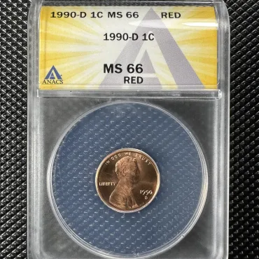 Đồng 1 Cent Mỹ 1990-D Lincoln Memorial – MS66 RED (ANACS)