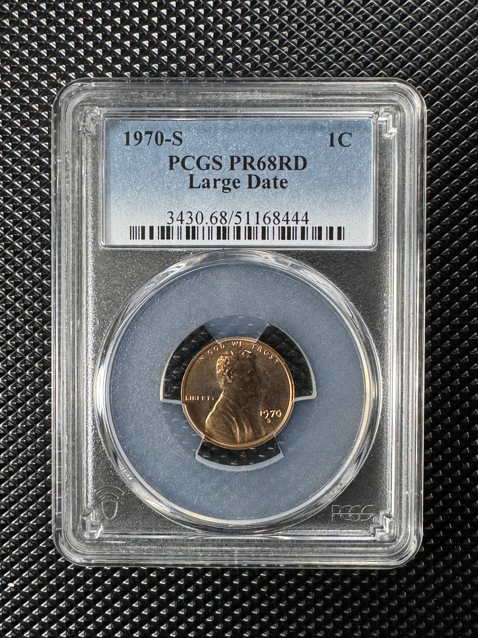 Đồng 1 Cent Mỹ 1970-S Lincoln Memorial – Proof PR68RD (PCGS) • Large Date