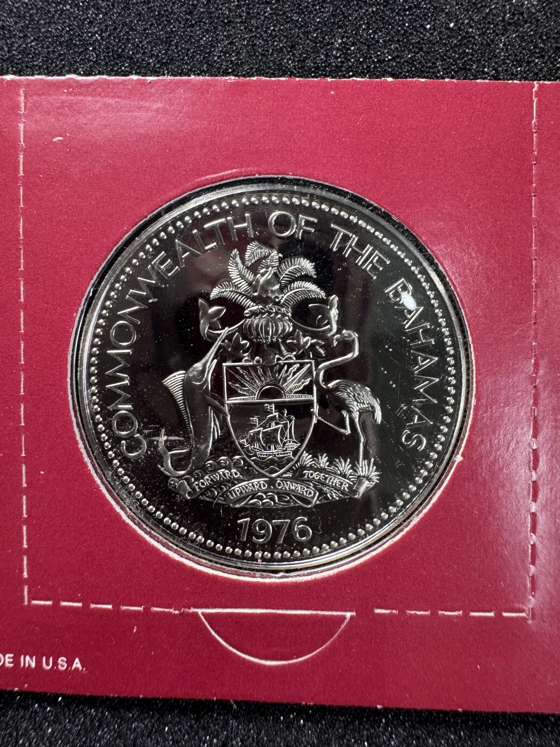 Quốc gia: BahamasTên xu: 2 Dollars BahamasMệnh giá: 2 DollarsNăm phát hành: 1976Chất liệu: Cupro-Nickel (Đồng – Niken)