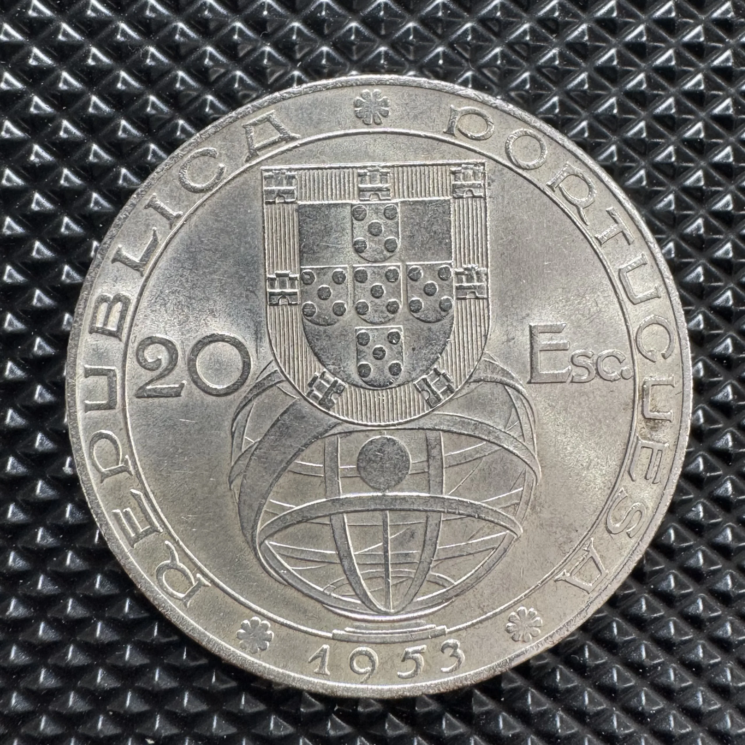Quốc gia: Bồ Đào Nha (Portugal)Mệnh giá: 20 EscudosNăm phát hành: 1953Chủ đề: 25th Anniversary – Financial Reform (Kỷ niệm 25 năm cải cách tài chính)Chất liệu: Bạc 0.800 (80% silver)