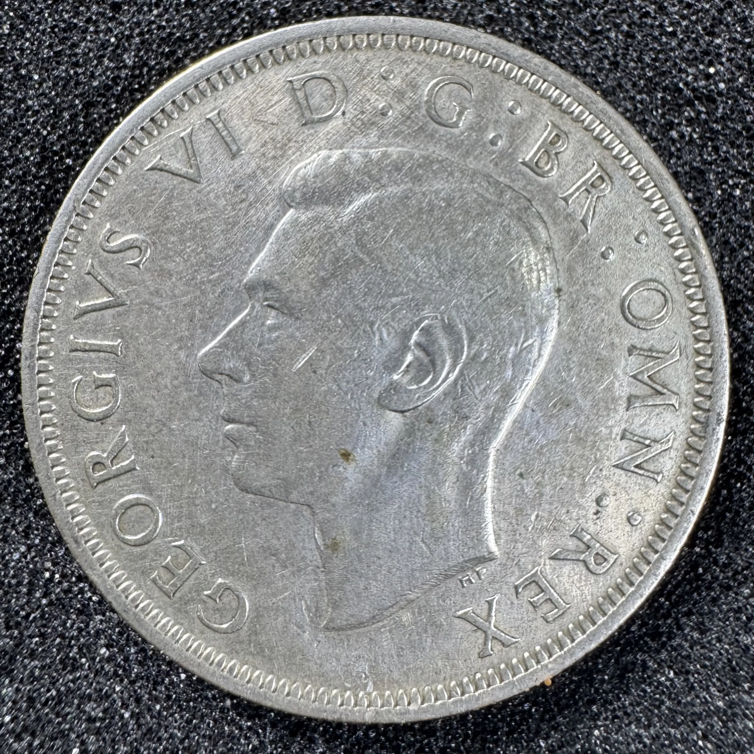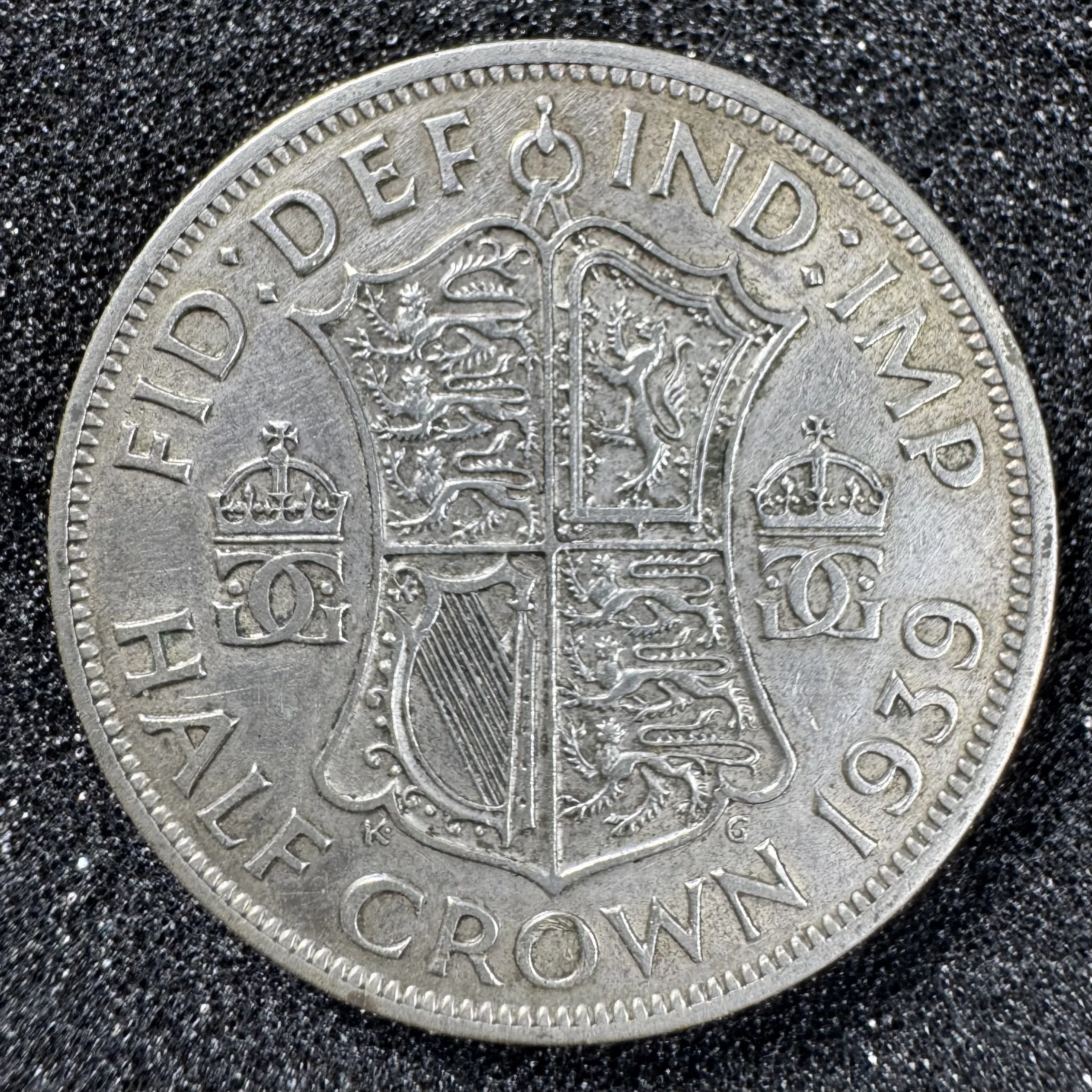 Quốc gia: Vương quốc AnhMệnh giá: ½ CrownNăm: 1939Chất liệu: Bạc 50%