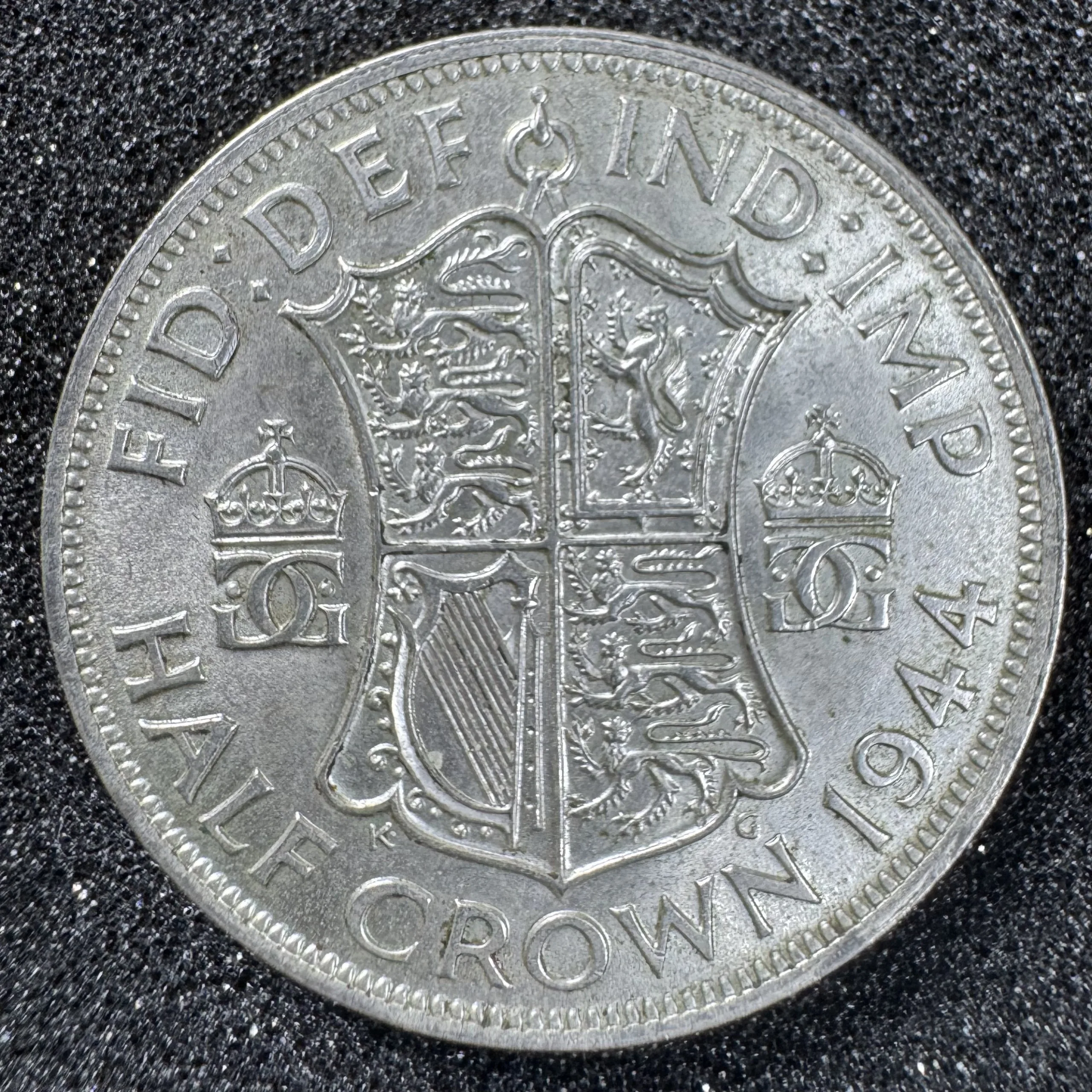 Quốc gia: Vương quốc AnhMệnh giá: ½ CrownNăm: 1944Chất liệu: Bạc 50%